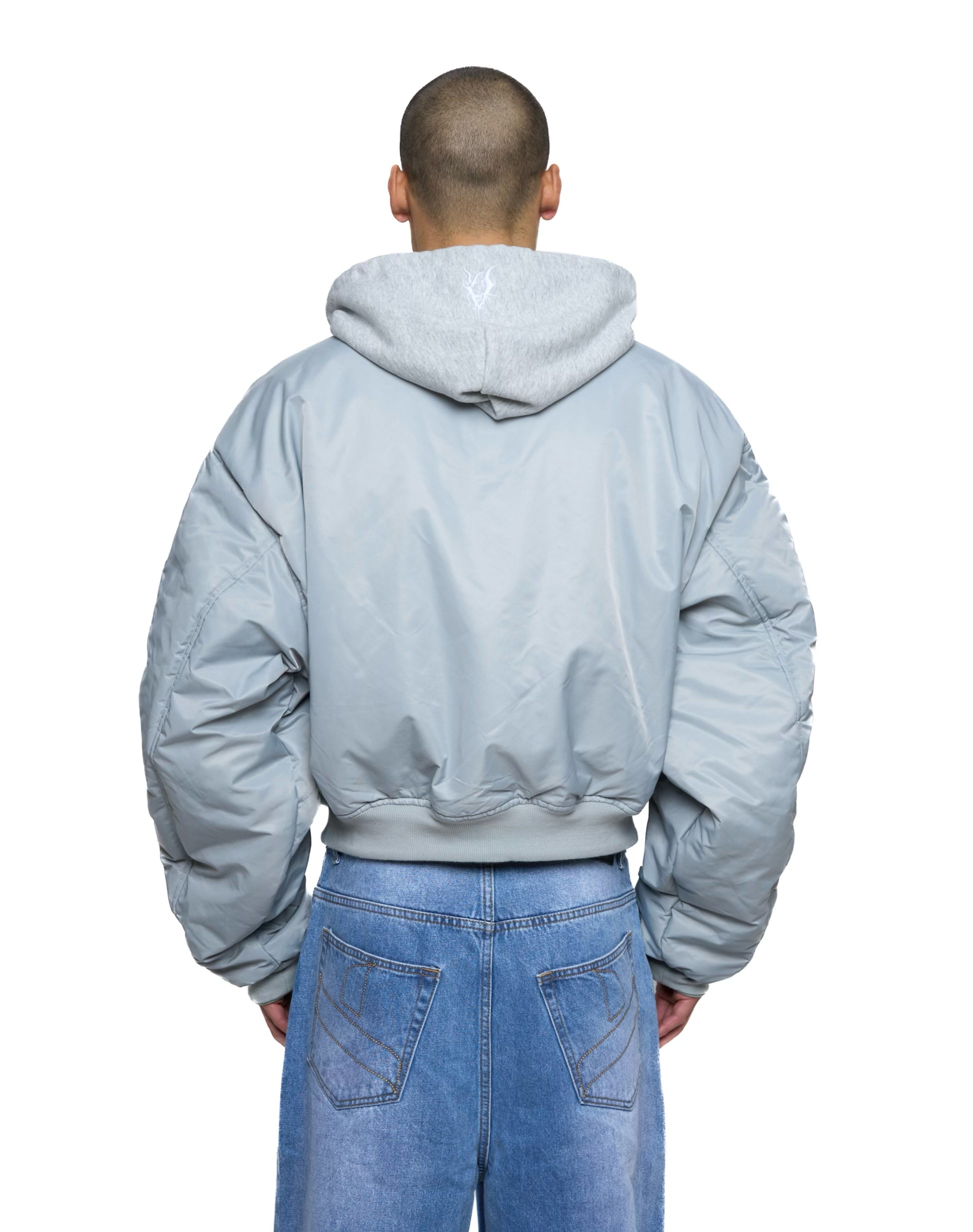 Bomber imbottito reversibile in 100% cotone con cappuccio e ricami 3D