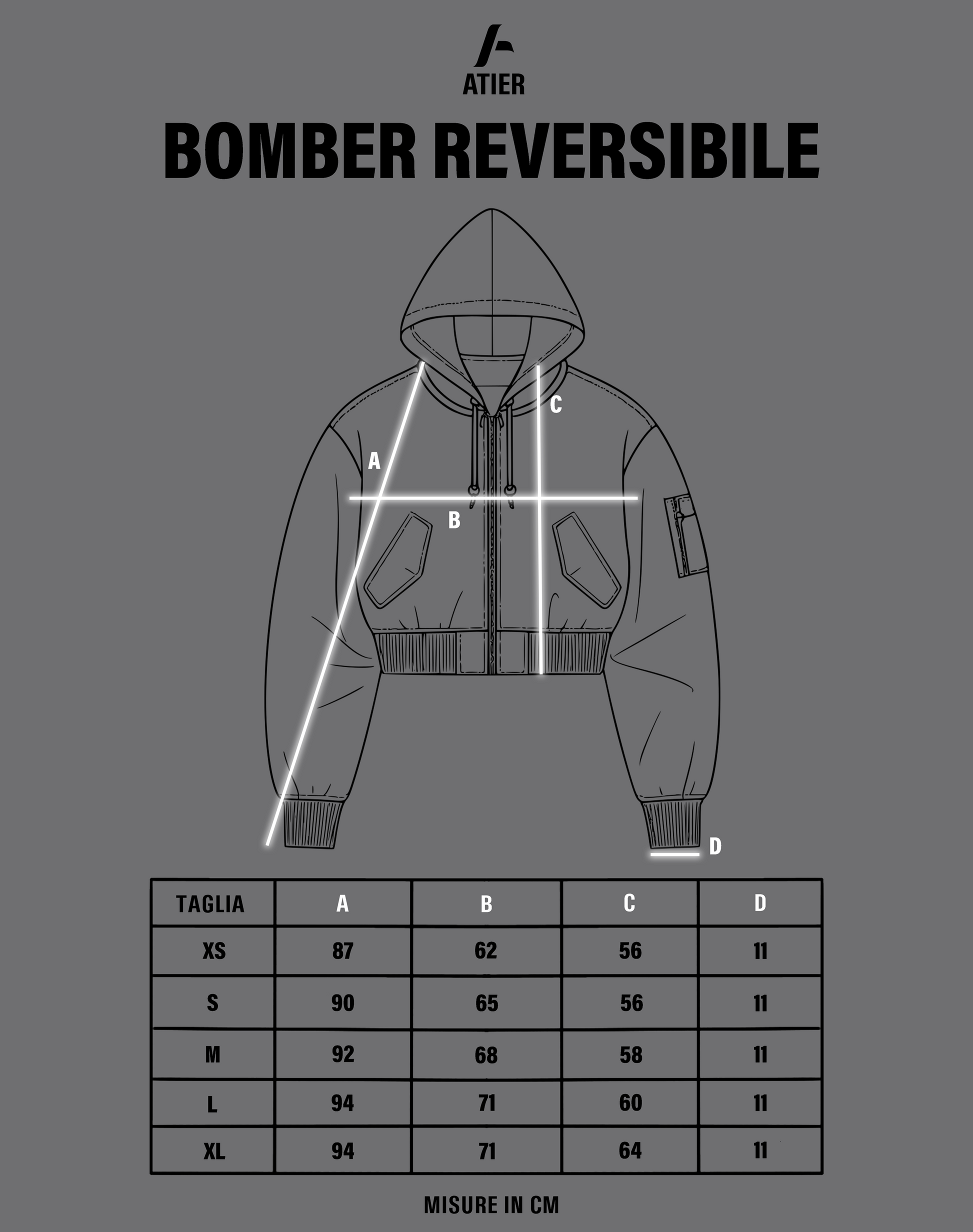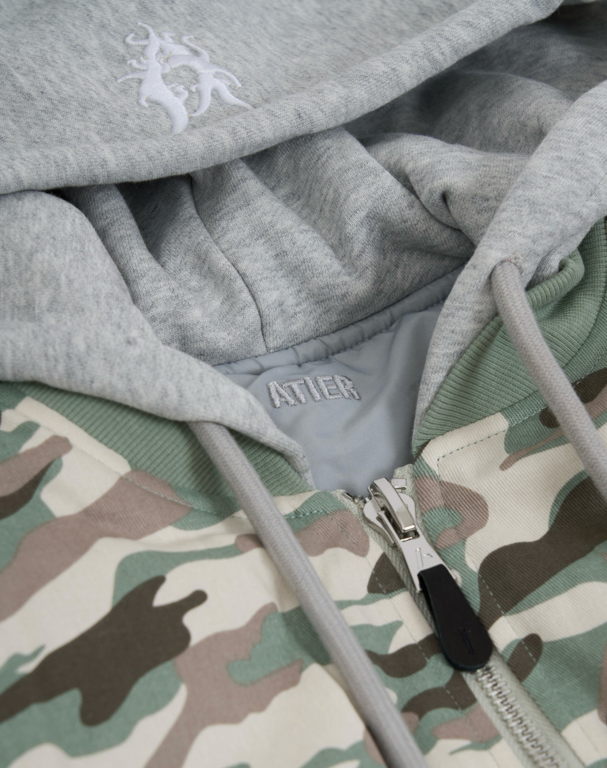 • Ricamo 3D del logo ATIER “A” su entrambi i lati del cappuccio